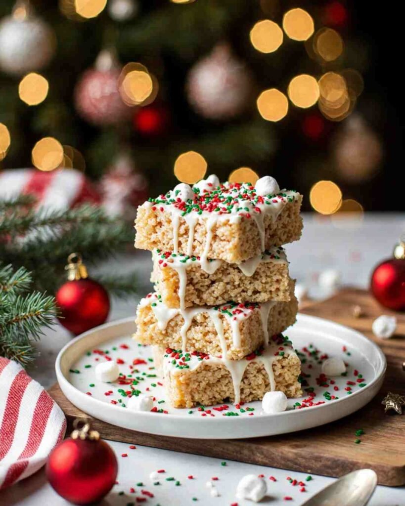 Fast, kid-friendly, ridiculously festive, and dangerously delicious, these little squares deserve a permanent spot in your holiday dessert lineup. Whether you’re making them for a cookie exchange, gifting them to neighbors, or stress-snacking while you wrap presents at 1 AM (we’ve all been there), these treats guarantee merry vibes only.