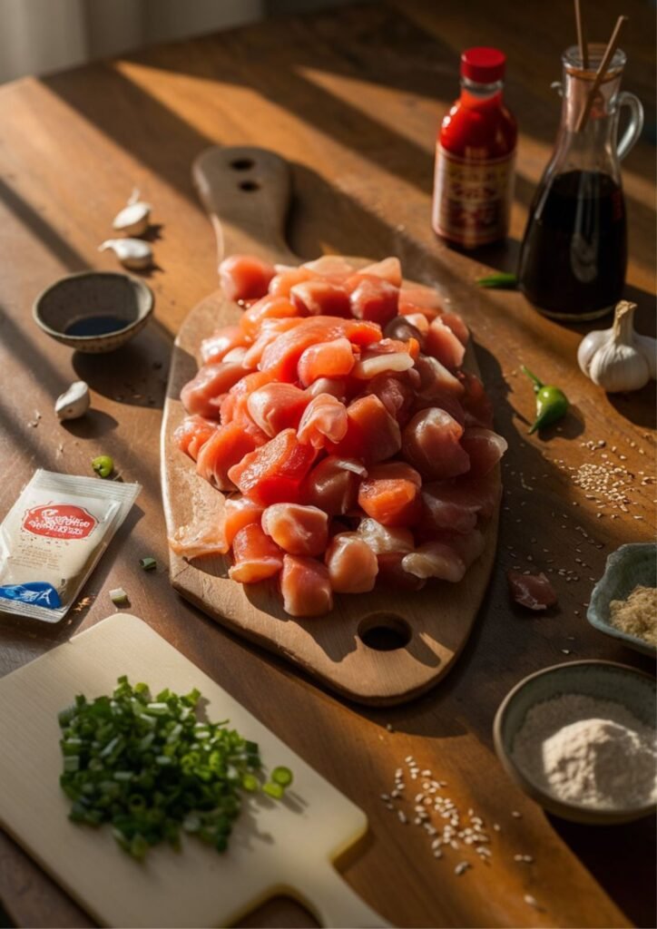 - Chicken Prep Party: Toss your chopped chicken pieces with the cornstarch, salt, and pepper in a bowl. Get it all coated evenly – think light, dusty jackets. No clumps! Let it sit for 5 minutes (good time to mince garlic or find your favorite spatula).