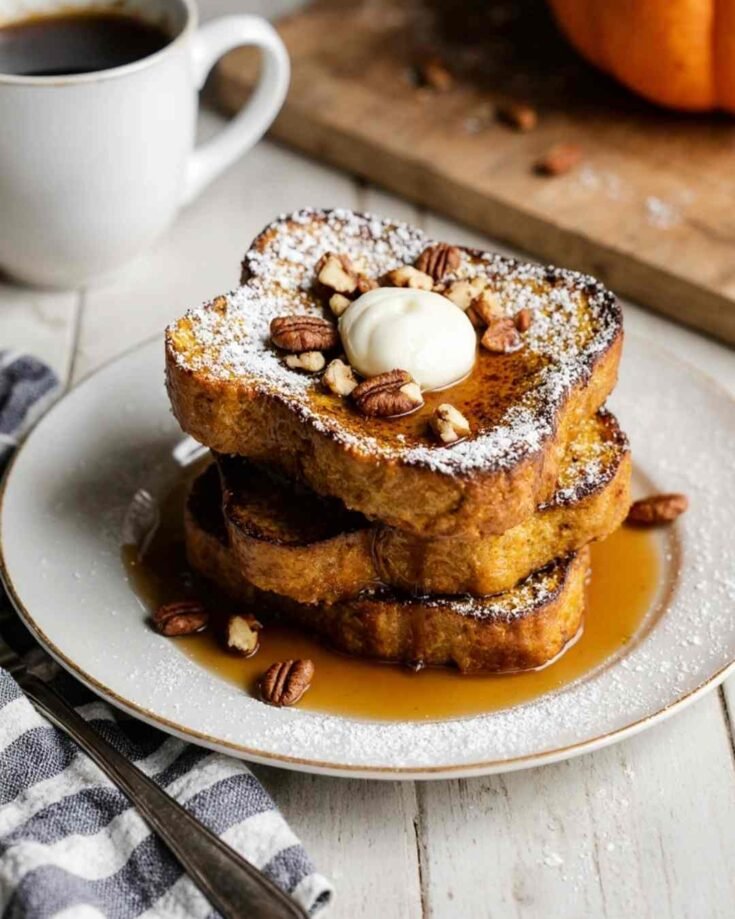 So go forth and embrace pumpkin season the way nature intended: with golden, spiced French toast and a generous pour of maple syrup. Breakfast will never be boring again.