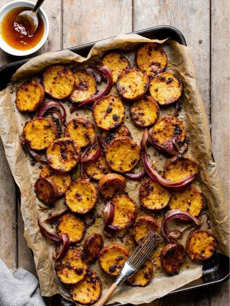 You can swap them out for butternut squash, carrots, or even Yukon gold potatoes. Just adjust the roasting time as needed. - Make it vegan: